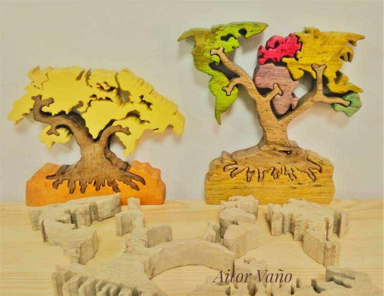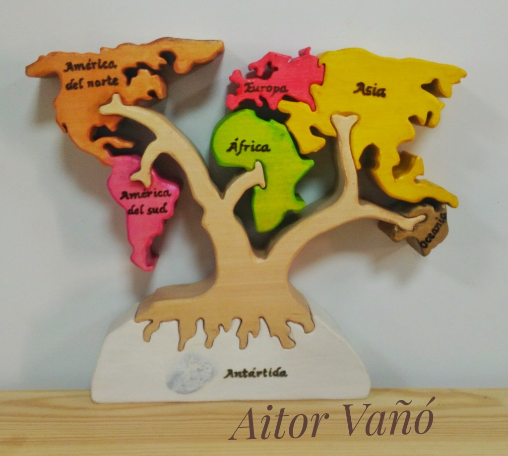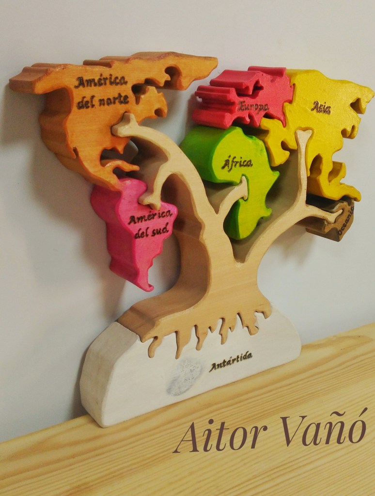 Arbol del mundo con los continentes como piezas de puzzle medidas 25cm x 25cm aprox el precio es de 40€